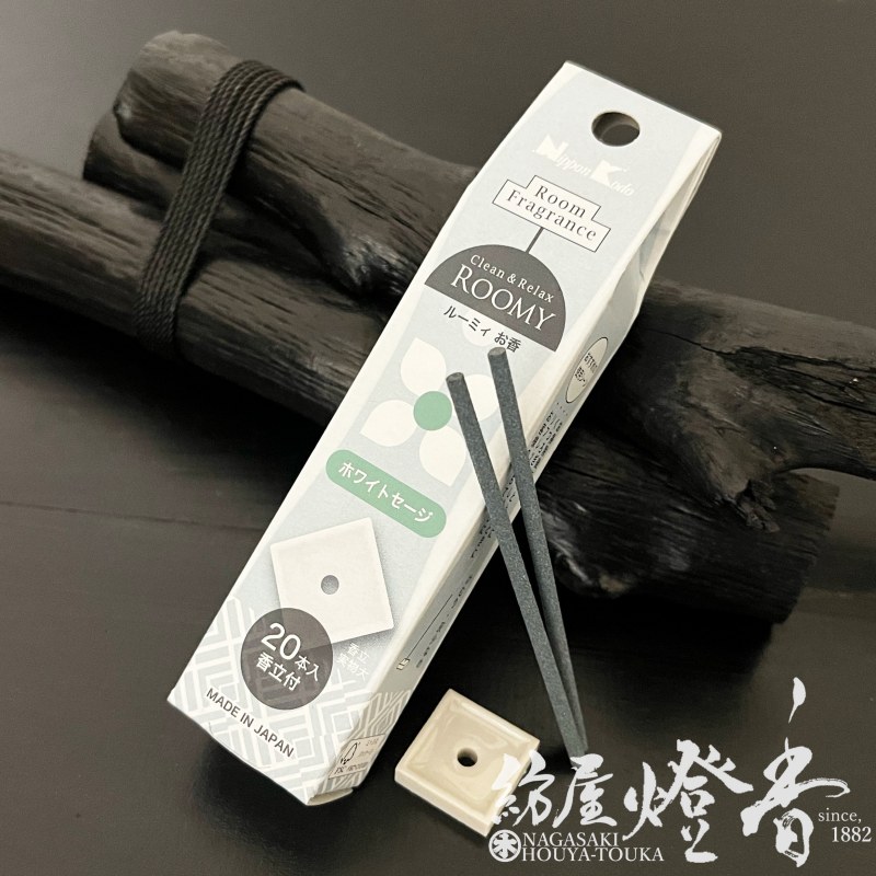 お香『ROOMY(ルーミィー)-Clean&Relax-【ホワイトセージ-whitesage-】ミニ寸スティック[少煙/香立付]』...