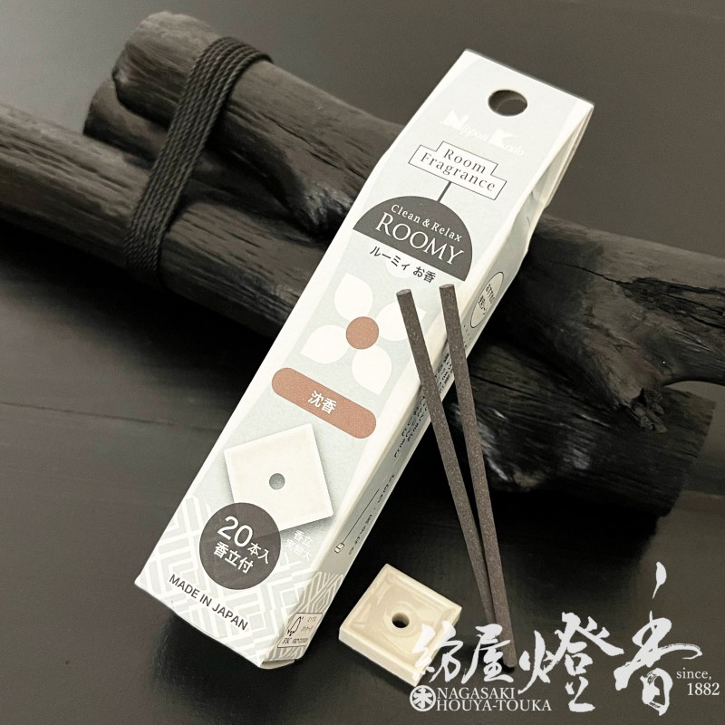 お香『ROOMY(ルーミィー)-Clean&Relax-【沈香-agarwood-】ミニ寸スティック[少煙/香立付]』日本香堂