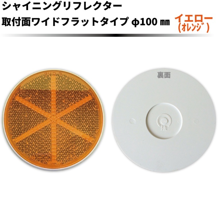 【イエロー(オレンジ)】シャイニングリフレクター Φ100 取付面ワイドフラットタイプ