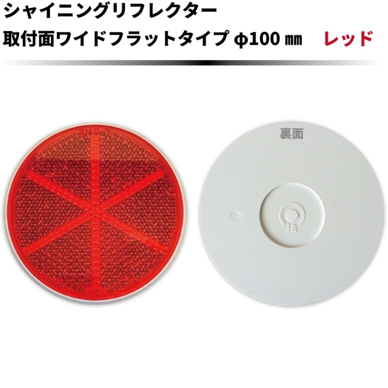 【レッド】シャイニングリフレクター Φ100 取付面ワイドフラットタイプ