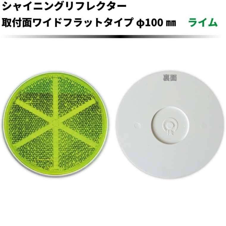 【ライムイエロー】シャイニングリフレクター Φ100 取付面ワイドフラットタイプ