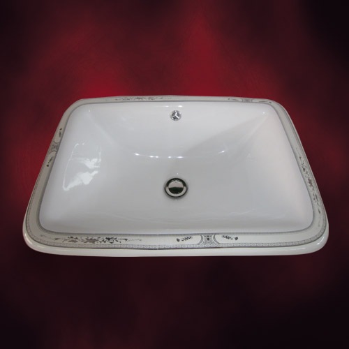 【廃番】洗面ボウル おしゃれ 埋め込み 四角 陶器 多少の柄のずれ有り オーバーフロー有り W550×D380×H187 INK-...