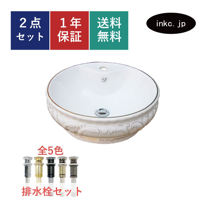 洗面ボウル おしゃれ 埋め込み 丸 陶器 柄付き オーバーフロー有り W560×D485×H200 INK-0403012H