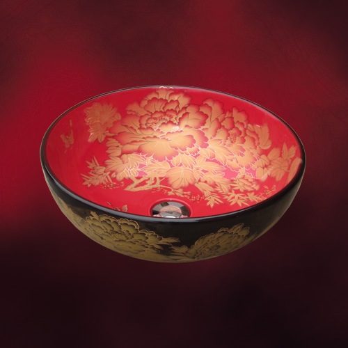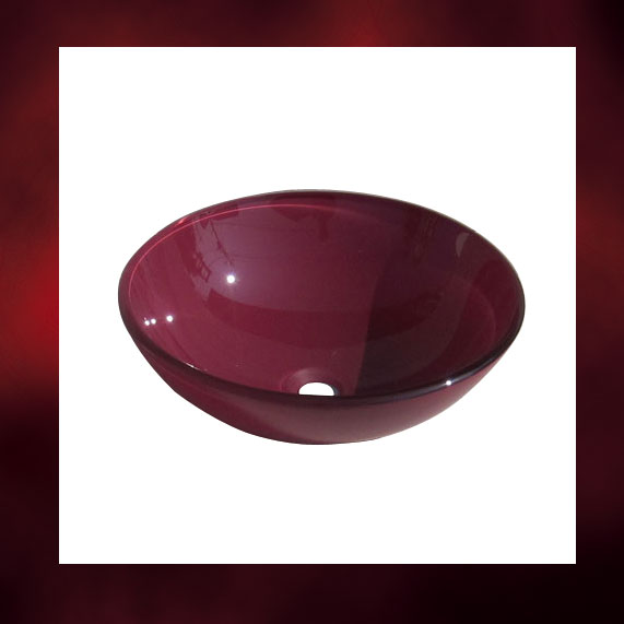 【廃番】品番INK-0404049H | あずき色が和風を感じさせるガラス洗面ボウル(訳あり・手洗い鉢)Φ420×H140