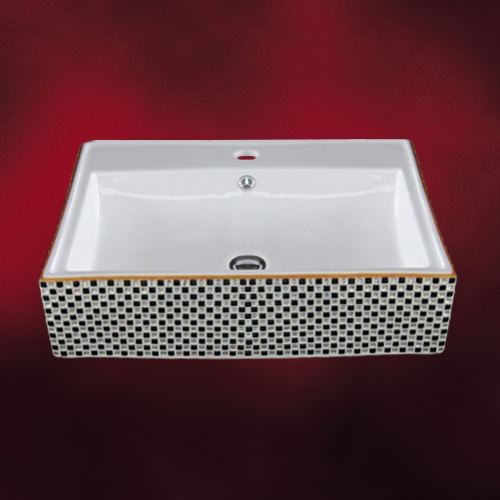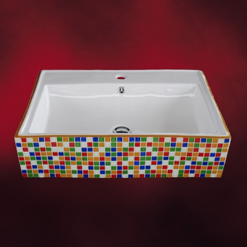 【販売終了】洗面ボウル 陶器 四角型 置き型(オンカウンターシンク) モザイクタイル カラフル オーバーフロー有り W610×D4...