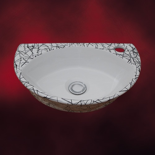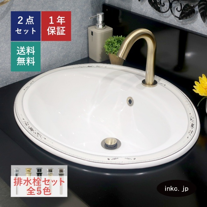 洗面ボウル おしゃれ 埋め込み 陶器 楕円 多少の柄のずれ有り W560×D485×H200 INK-0403014H