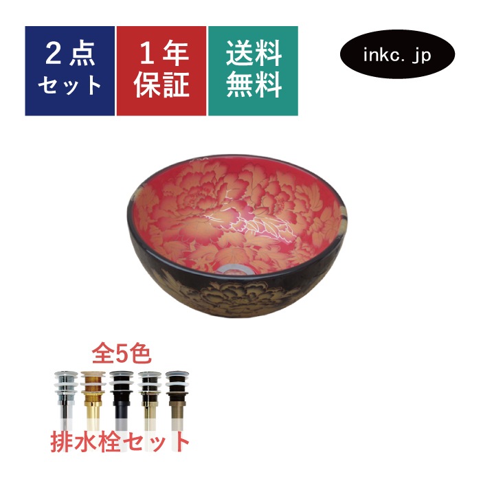 【廃番】洗面ボウル 手洗い鉢 和柄 おしゃれ オーバーフロー無し Φ310×H135 INK-0403175H