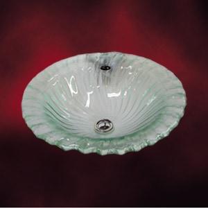 【廃番】品番INK-CC1005 | 縁のひらひらがかわいいガラス洗面ボウル(クリア透)Φ420×H140