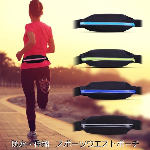 リフレクター付きで安心『スポーツウェストポーチ』伸縮性 ボディフィット 防水