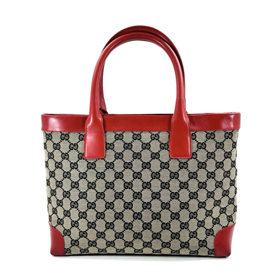 GUCCI グッチ トートバッグ GGキャンバス レザー レッド グレー系 002 1119
