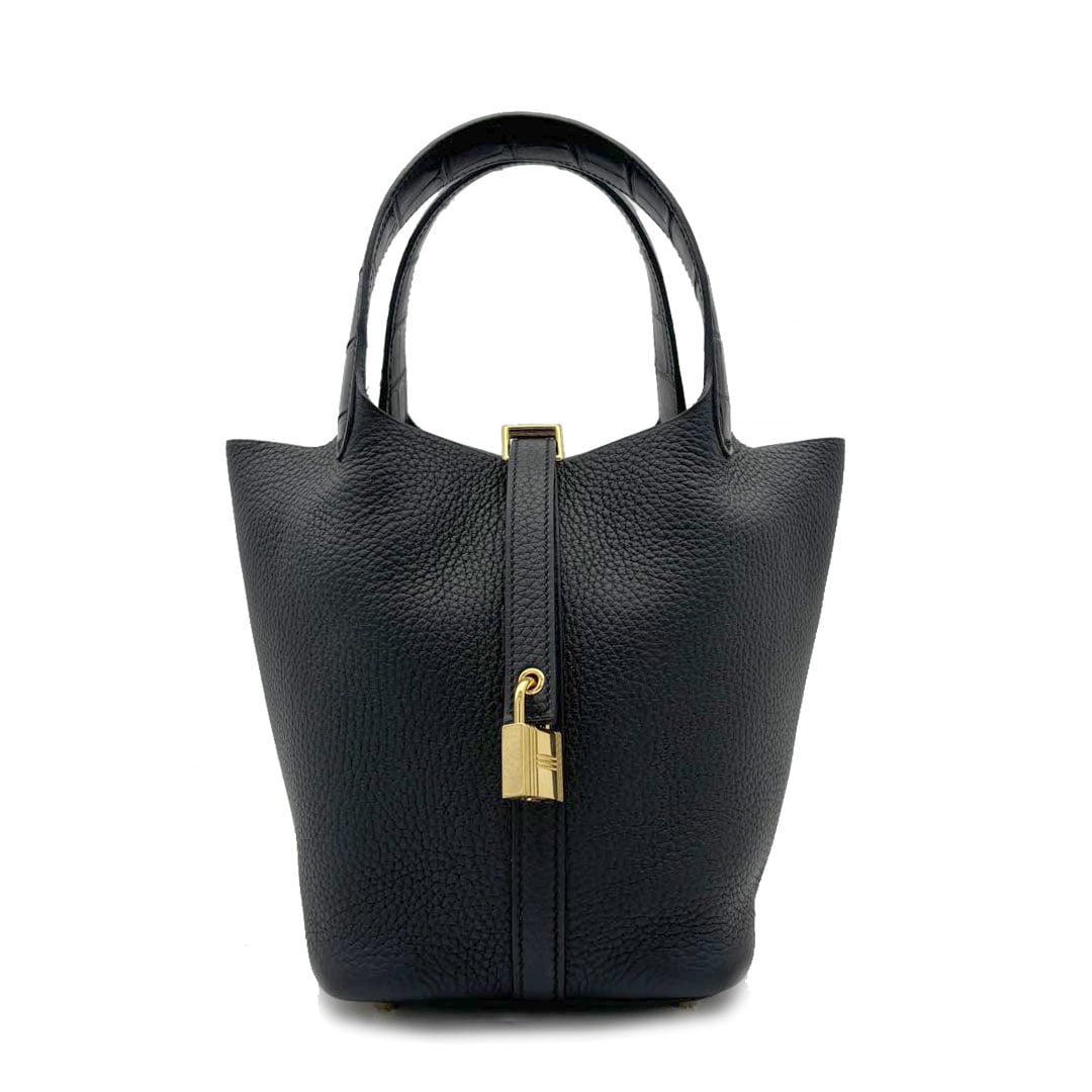 HERMES エルメス ピコタンロック タッチ18 PM トリヨンクレマンス/アリゲーターマット ブラック ゴールド金具 B刻印