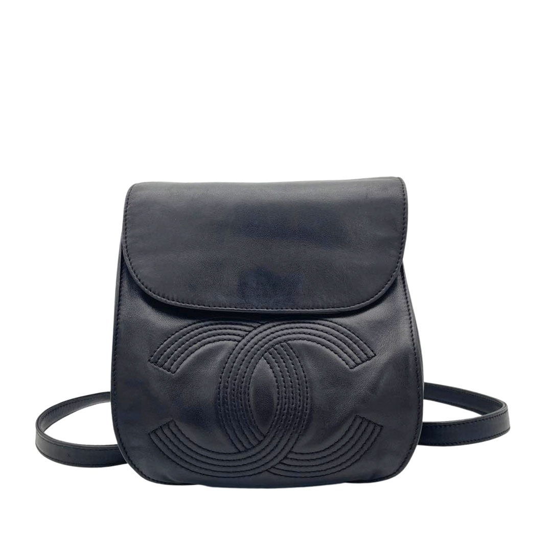 CHANEL シャネル ミニチェーンリュック バックパック ココマーク ラムスキン ブラック シルバー金具 4番台