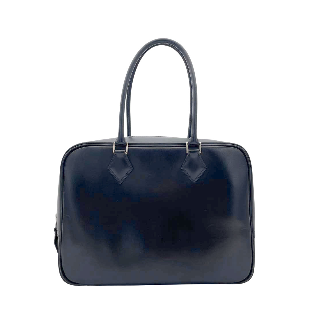 HERMES エルメス プリュム28 ハンドバッグ ボックスカーフ ノワール シルバー金具 □C刻印