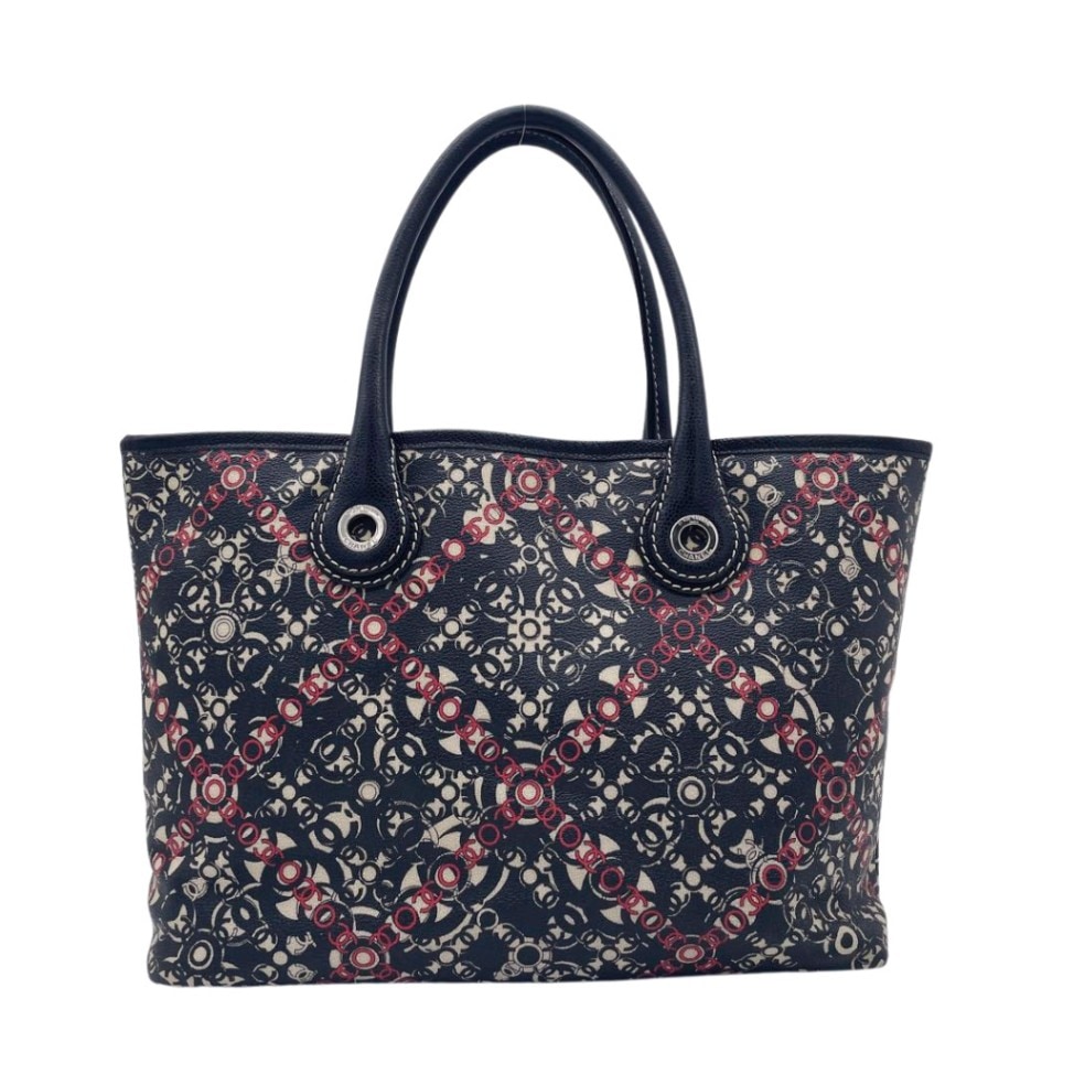 HERMES エルメス トートバッグ パニエド プラージュPM シェーヌダンクル柄 キャンバス アイボリー/ネイビー