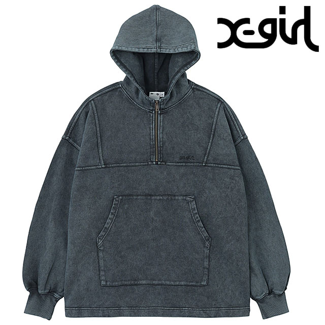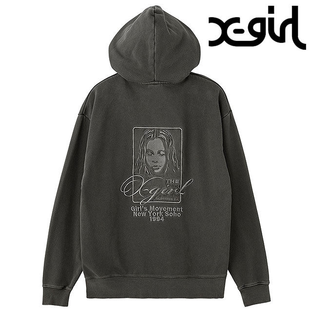 エックスガール X-girl レディース ピグメントダイフェイスアンドロゴ スクエアパッチ ジップアップスウェットフーディー [1...