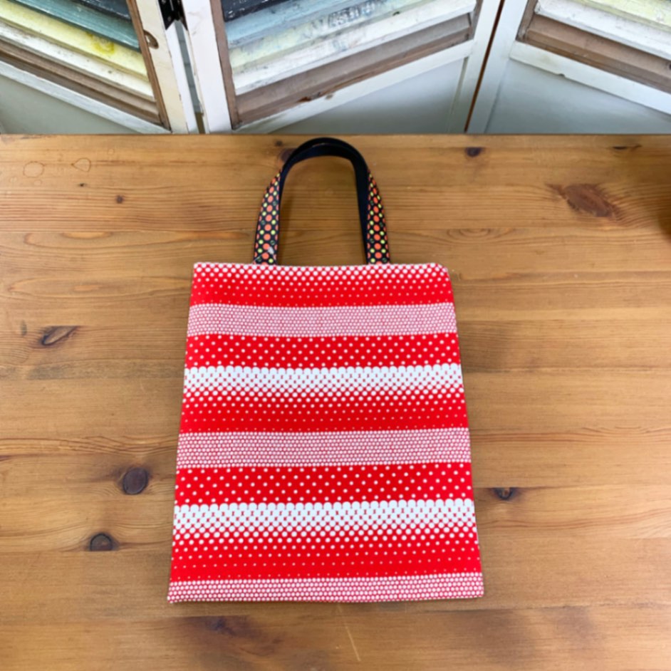 【水玉ドットシンプルトート】<レッドウェーブ> A4トート レッスンバッグ おでかけ お散歩バッグ カラフルドット