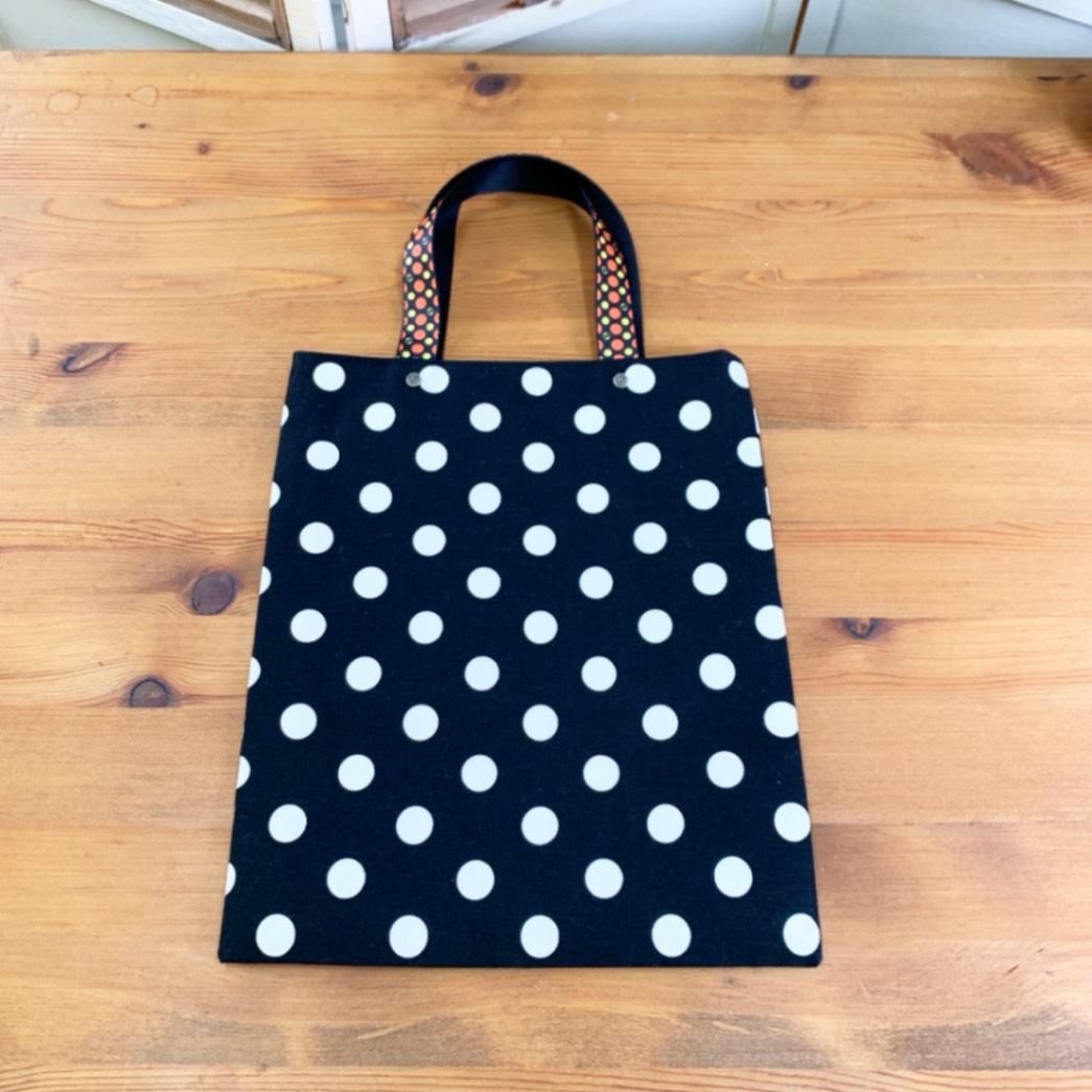 【水玉ドットシンプルトート】<コスモブラック> A4トート レッスンバッグ おでかけ お散歩バッグ カラフルドット