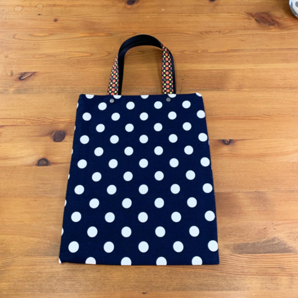 【水玉ドットシンプルトート】<ディープネイビー> A4トート レッスンバッグ おでかけ お散歩バッグ カラフルドット