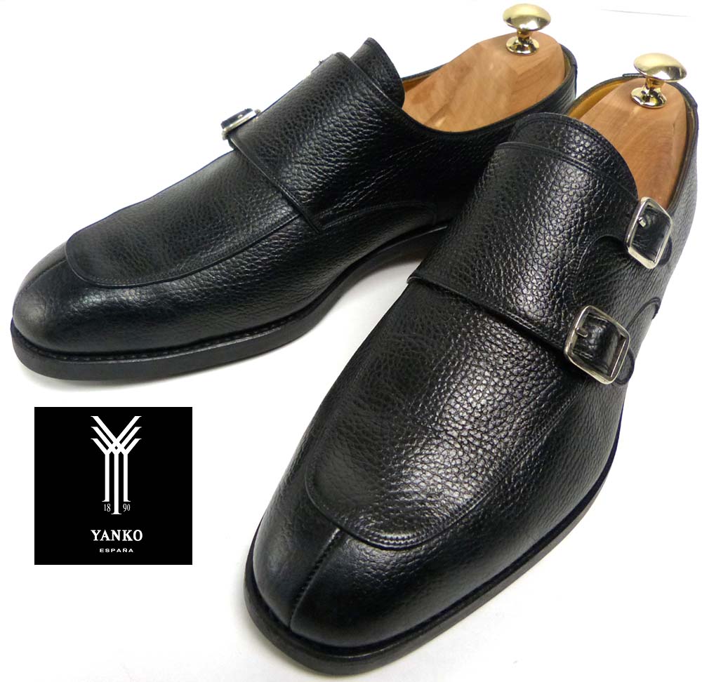スペイン製 YANKO / ヤンコ シボ革 ダブルモンクストラップ シューズ UK8(26.5cm相当)(メンズ)【中古】【送料無...
