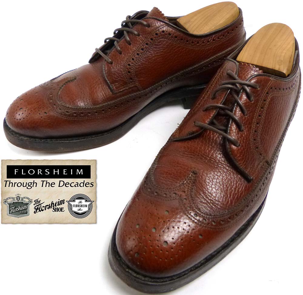 Florsheim フローシャイム シボ革 ロングウイングチップシューズ 8D(26cm相当)(メンズ)【中古】【送料無料】