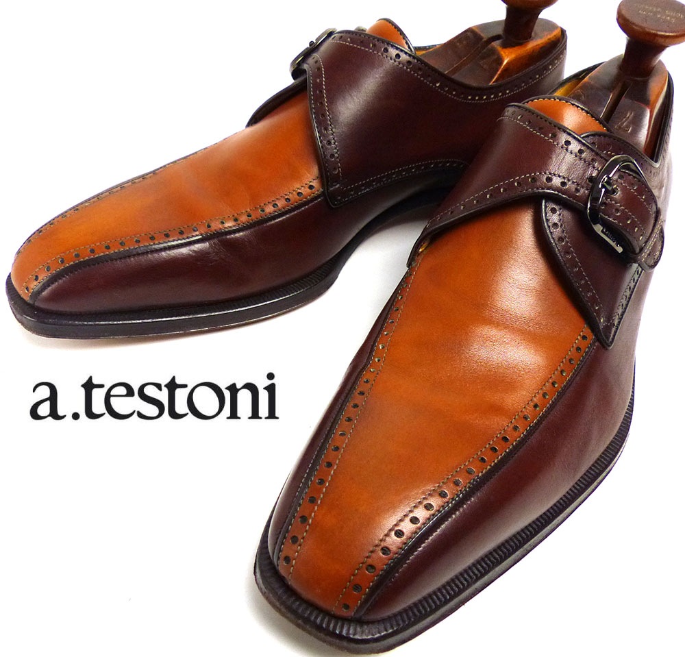 イタリア製 ア・テストーニ / ブラックラベル モンクストラップ スワールトゥシューズ UK7 1/2(26.5cm相当)(メン...