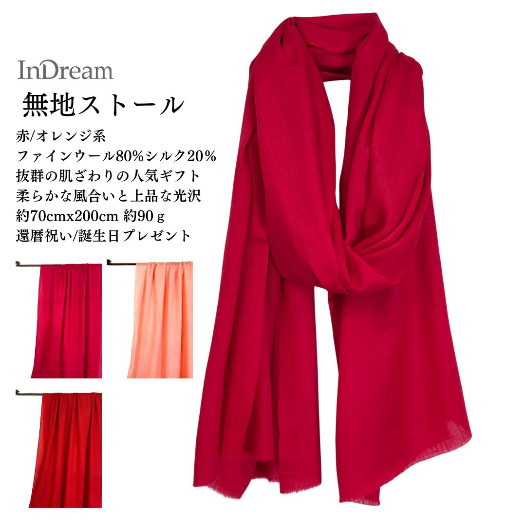 InDream ファインウール シルク ストール 大判 [約70cmx200cm]無地ストール 赤 レッド オレンジ 秋 冬 春 ...