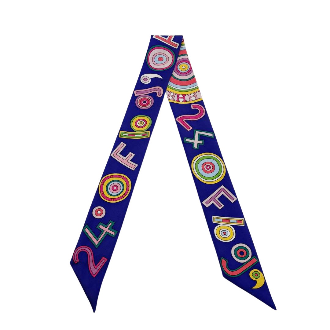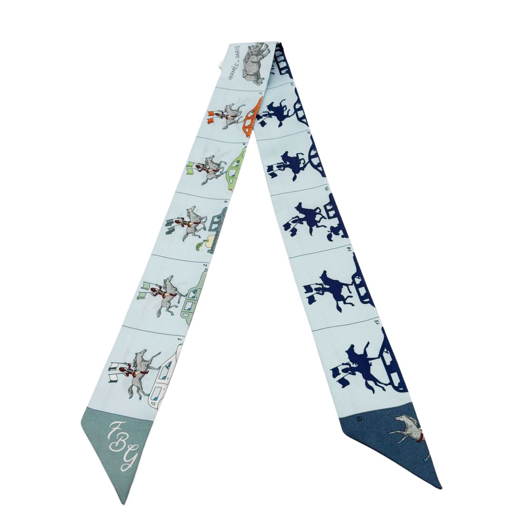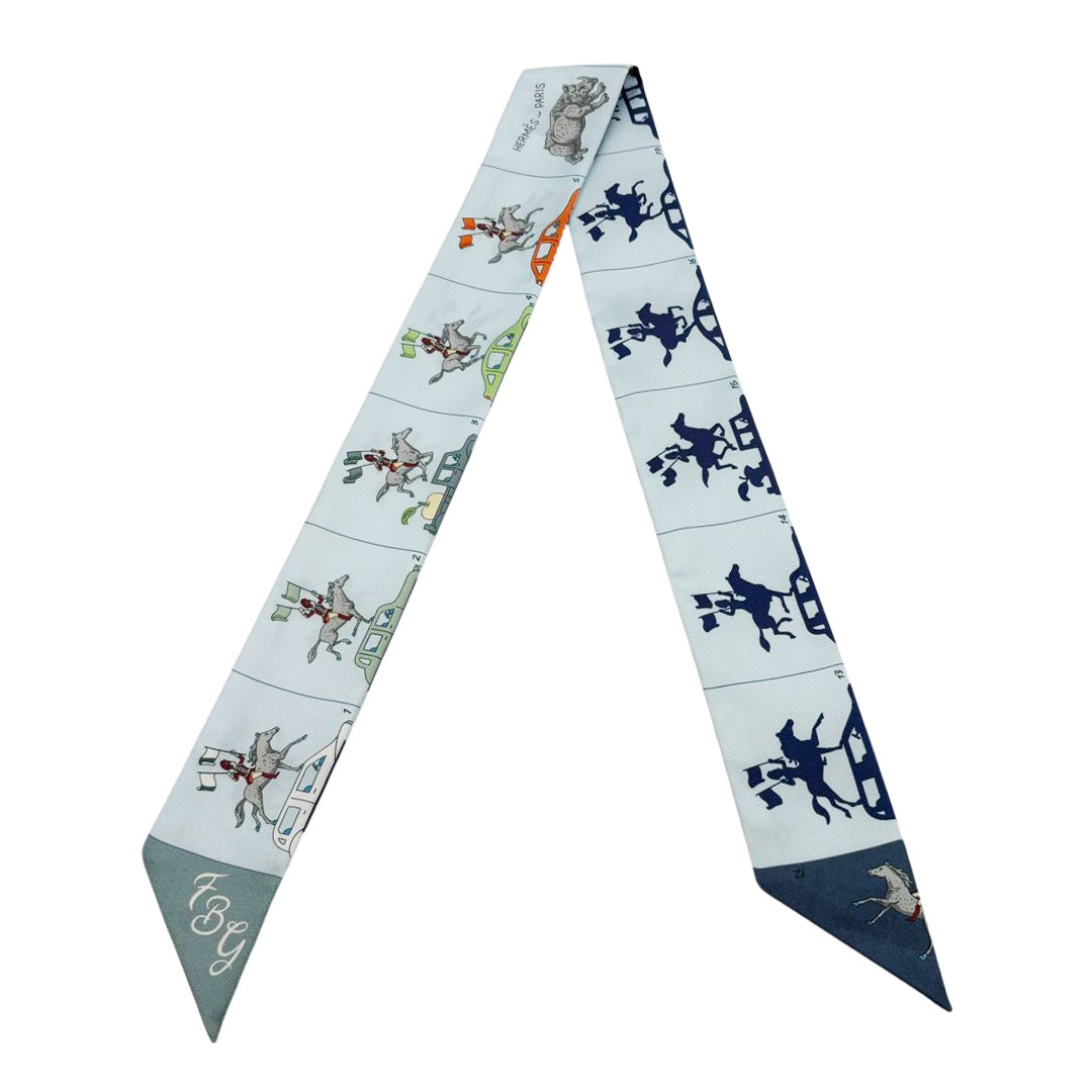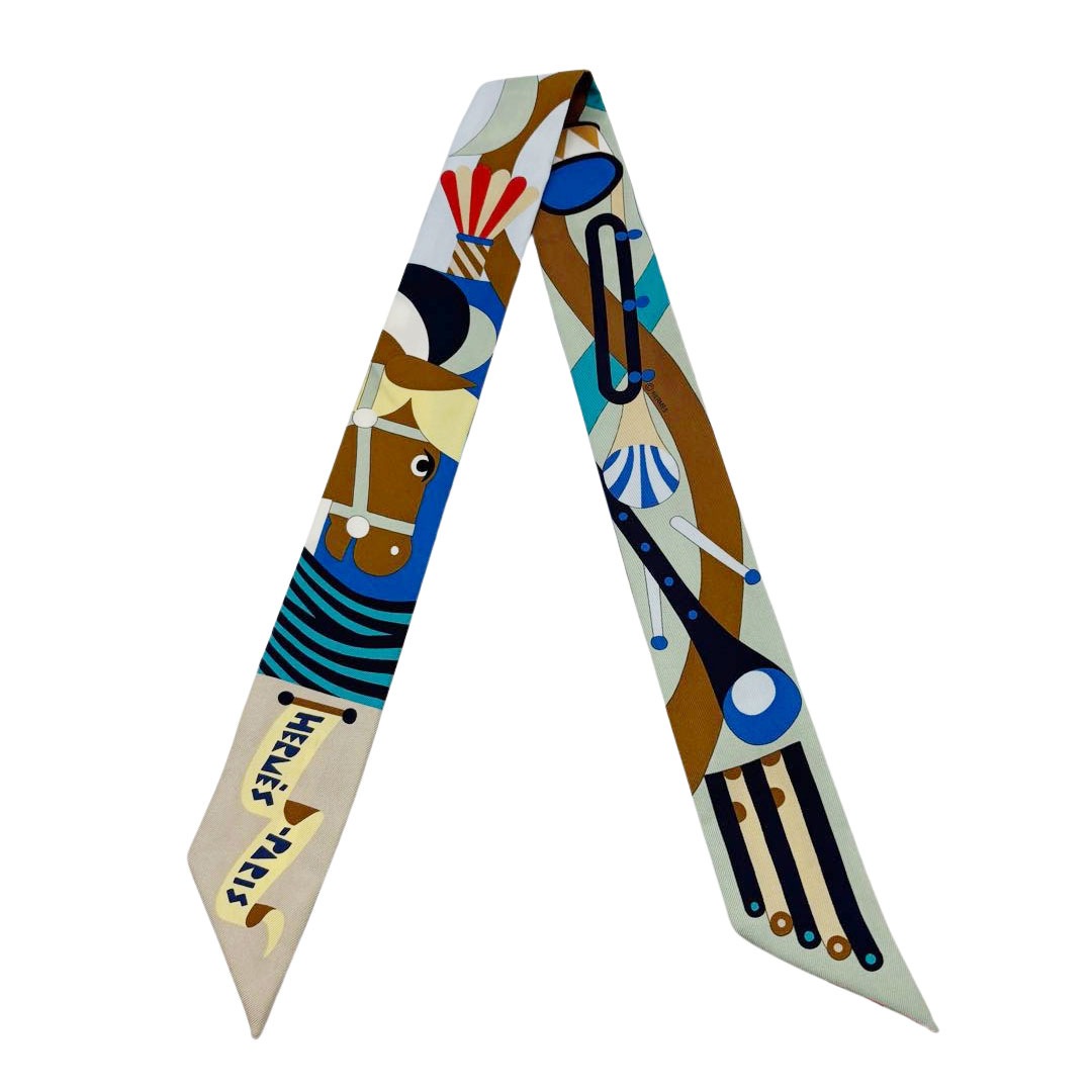 HERMES エルメス スカーフ ツイリー 『Parade en Fanfare(パラード・アン・ファンファーレ)』 シルク ブル...