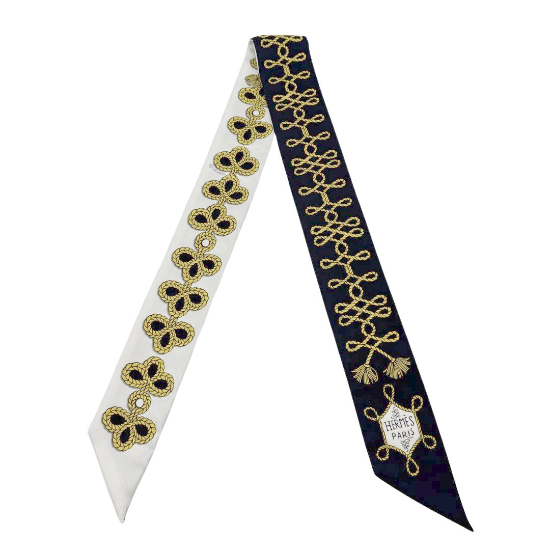 HERMES エルメス スカーフ ツイリー 『Galons et Brandebourgs(飾緒とブランデンブルク飾り)』 シルク...