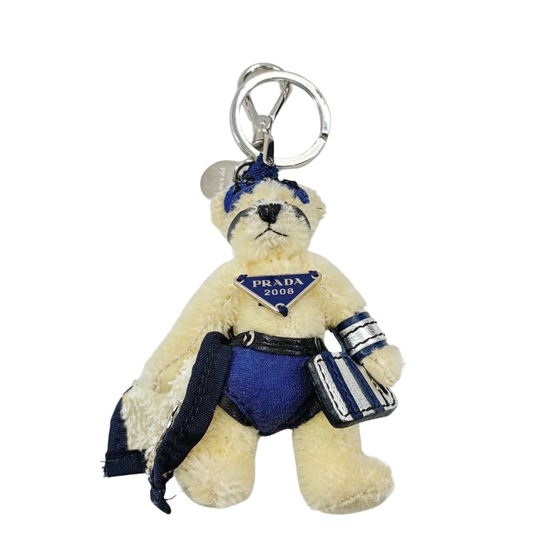 PRADA プラダ キーホルダー バッグチャーム スイミング ベアトリック アイボリー/ネイビー/シルバー 1AR993 2008...