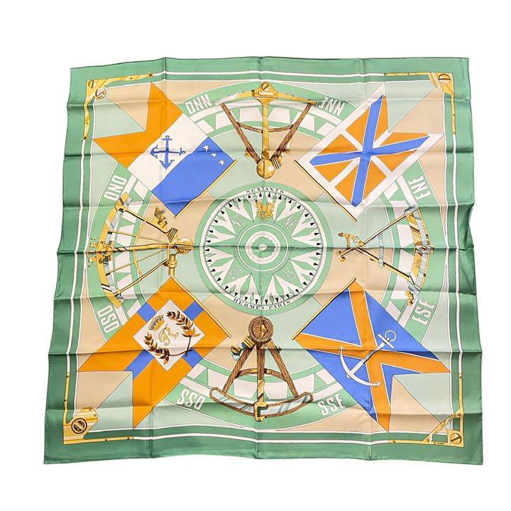 HERMES エルメス スカーフ カレ90 『SEXTANTS(六分儀)』 シルク ライトグリーン系