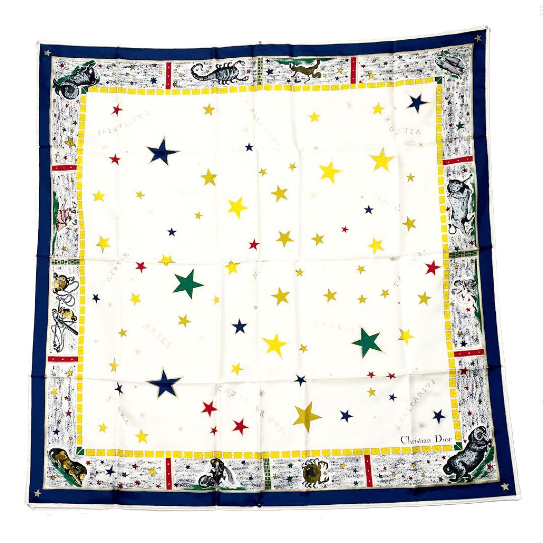 Christian Dior クリスチャンディオール スカーフ 12星座モチーフ シルク アイボリー ネイビー ゴールド