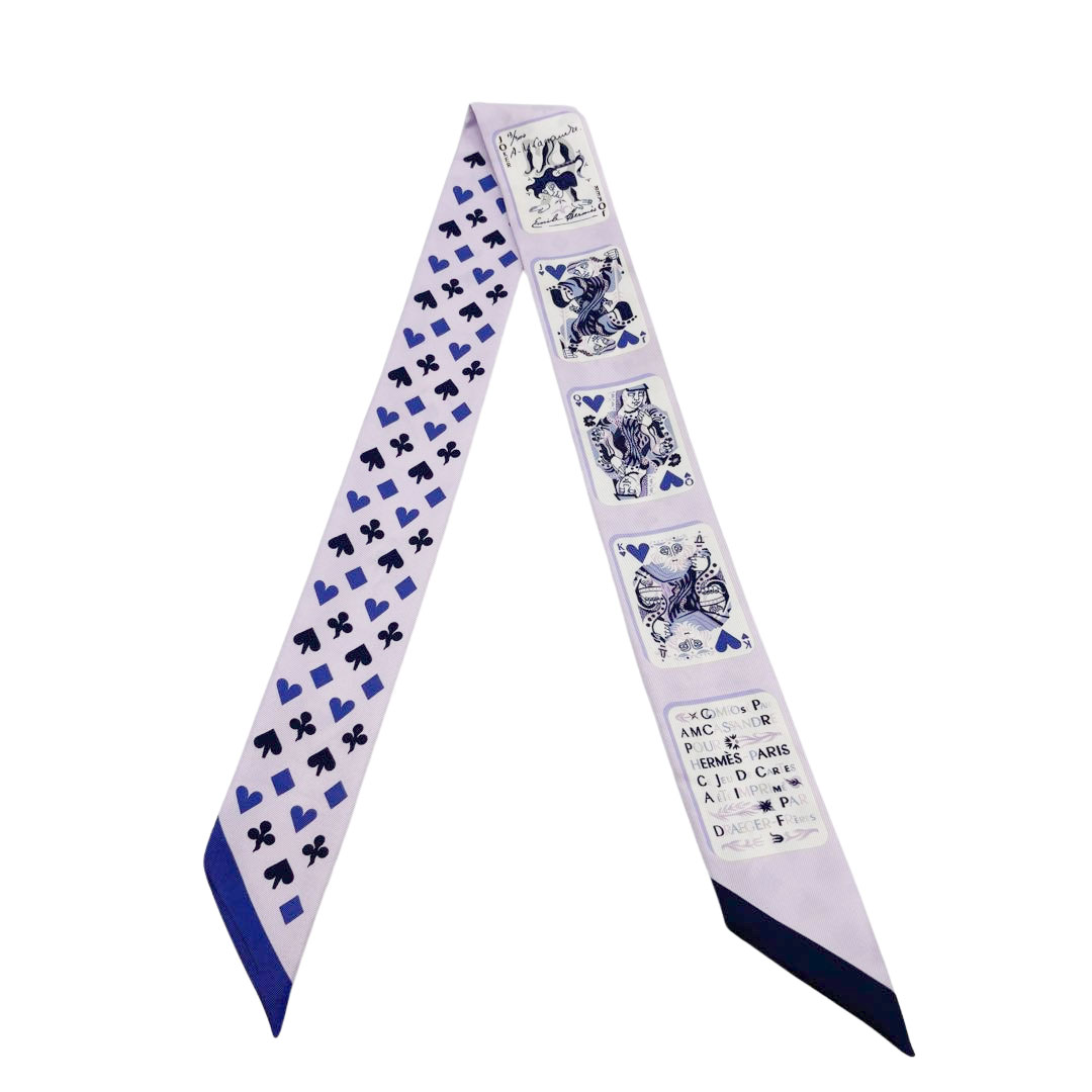 HERMES エルメス スカーフ ツイリー 『Jeu de Cartes(ジュドーカルト)』 シルク トランプ柄 パープル 201...