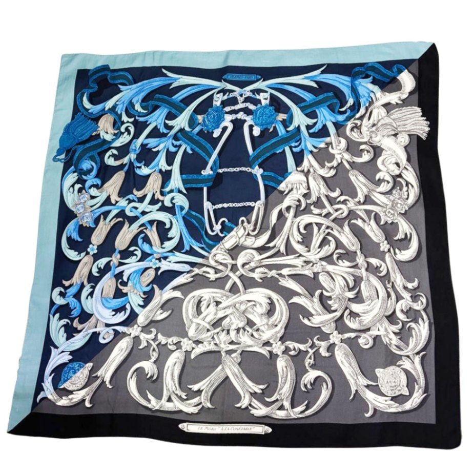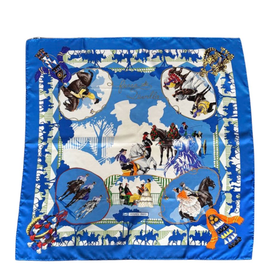 HERMES エルメス スカーフ カレ90 『feria de sevilla(セビリアの休日)』 シルク ブルー系