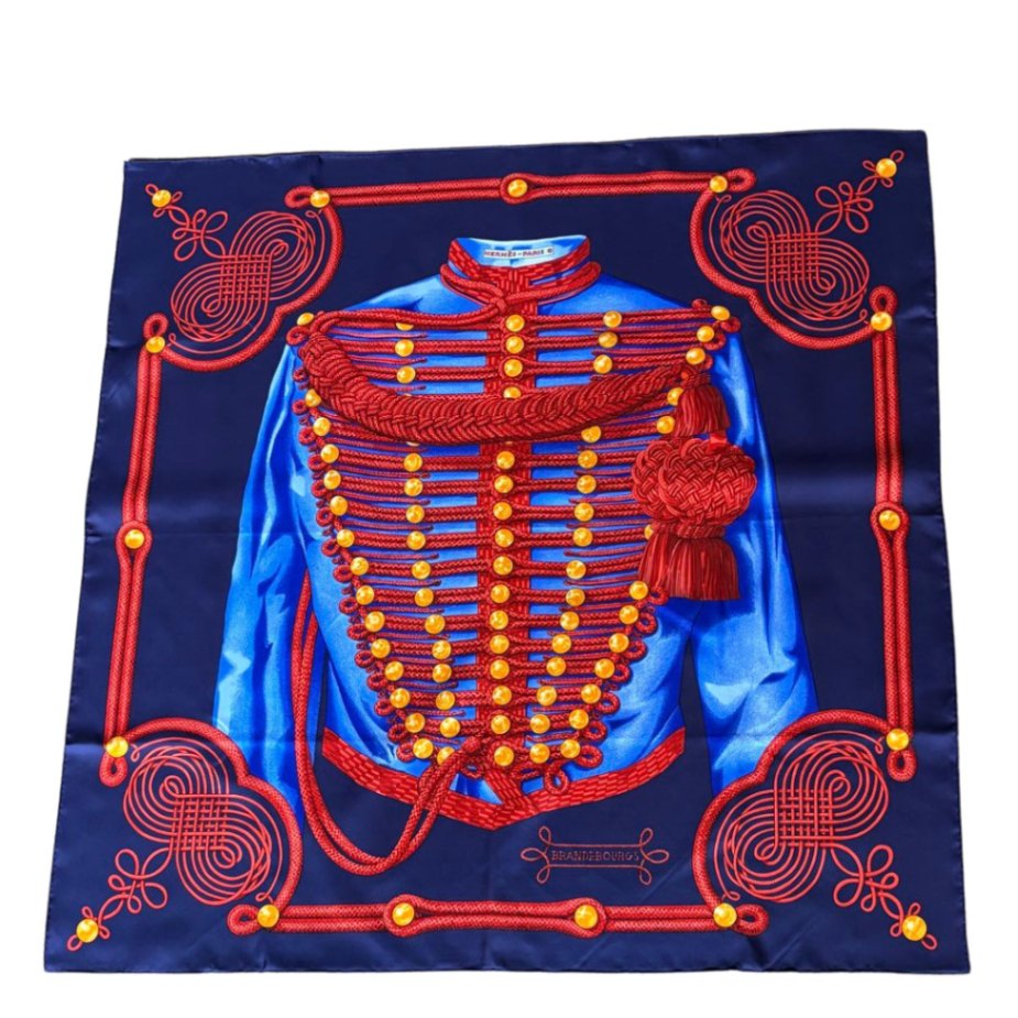 HERMES エルメス スカーフ カレ90 『BRANDEBOURGS(ブランデンブルク飾り)』 シルク ネイビー/レッド系