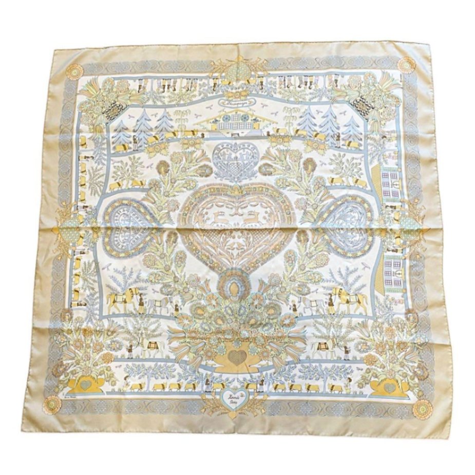 HERMES エルメス スカーフ カレ90 『Decoupages(切り絵)』 シルク ベージュ系
