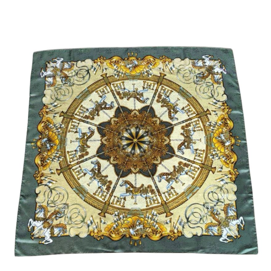 HERMES エルメス ショール カレジェアン140 『LES ROUES DE PHAETON(四輪馬車の車輪・バンダナ)』 カ...
