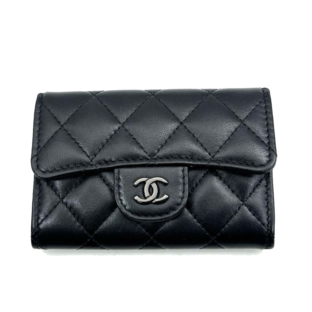 CHANEL シャネル クラシック フラップカードケース マトラッセ ラムスキン ソーブラック 31番台