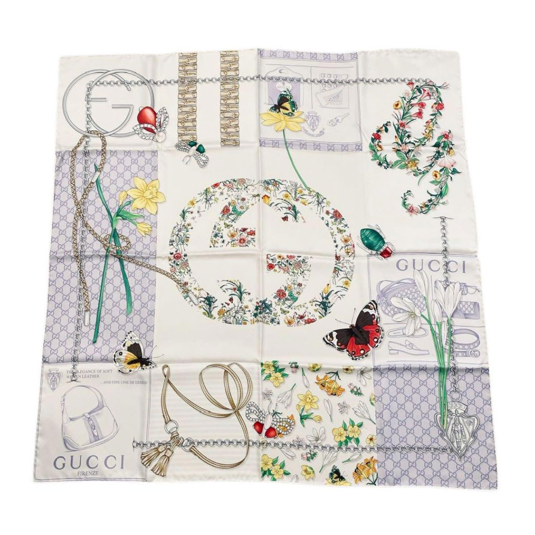 GUCCI グッチ スカーフ インターロッキングG フローラ シルク ホワイト系 マルチカラー