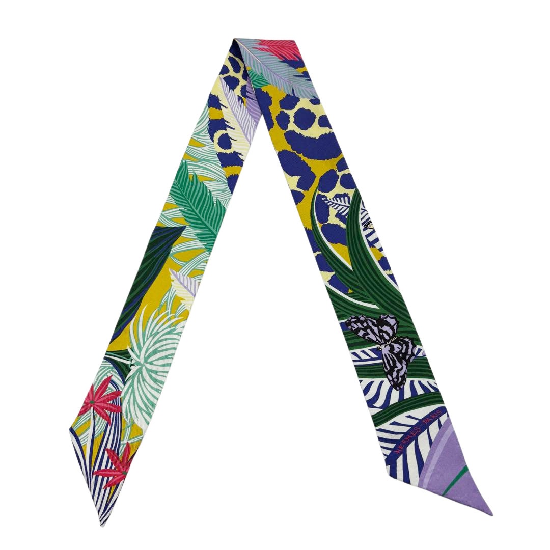 HERMES エルメス スカーフ ツイリー 『JAGUAR QUETZAL(ジャガー ケツァール)』 シルク ジョーヌ/ヴェール/...