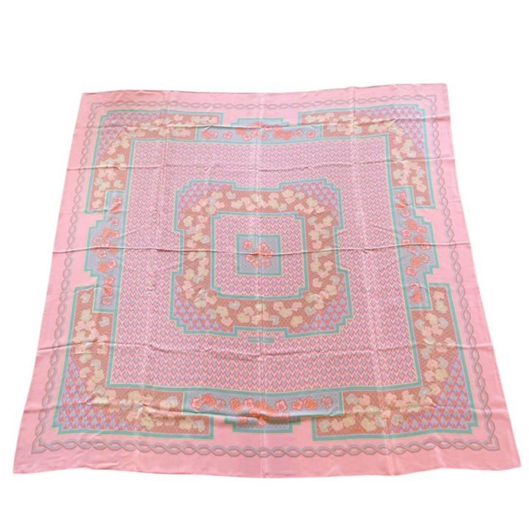HERMES エルメス ストール 大判スカーフ カレ140 花柄 シルク ピンク