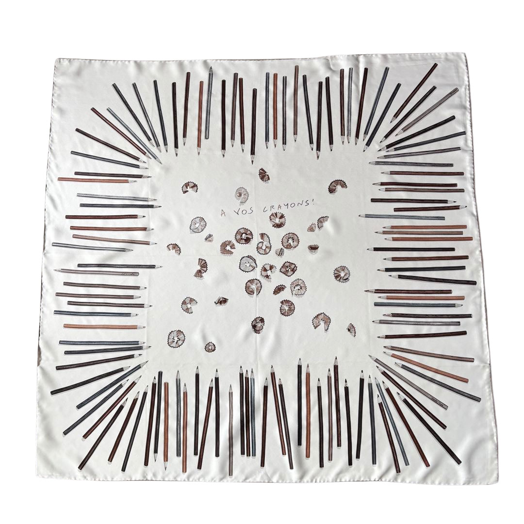 HERMES エルメス スカーフ カレ90 『A VOS CRAYONS(さあ色鉛筆を出して!)』 シルク アイボリー系