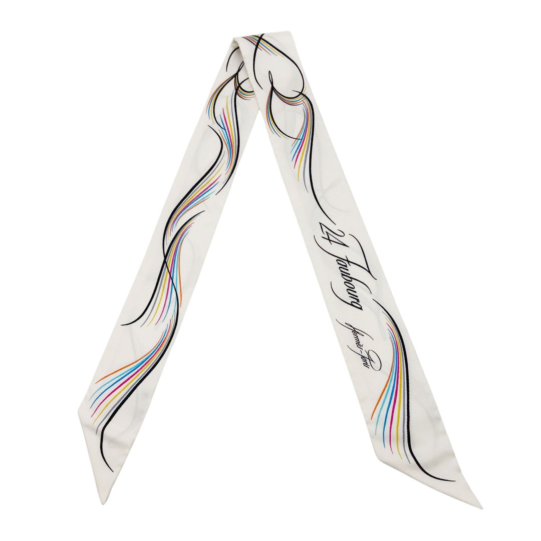 HERMES エルメス スカーフ ツイリー 『24 FAUBOURG』 シルク ホワイト マルチカラー