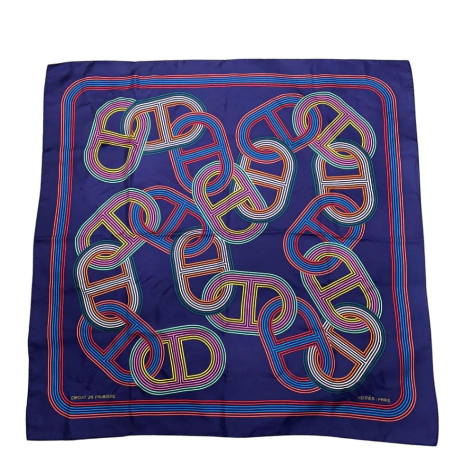 HERMES エルメス スカーフ カレ90 『CIRCUIT 24 FAUBOURG(24番地のサーキット)』 シルク インディゴ...