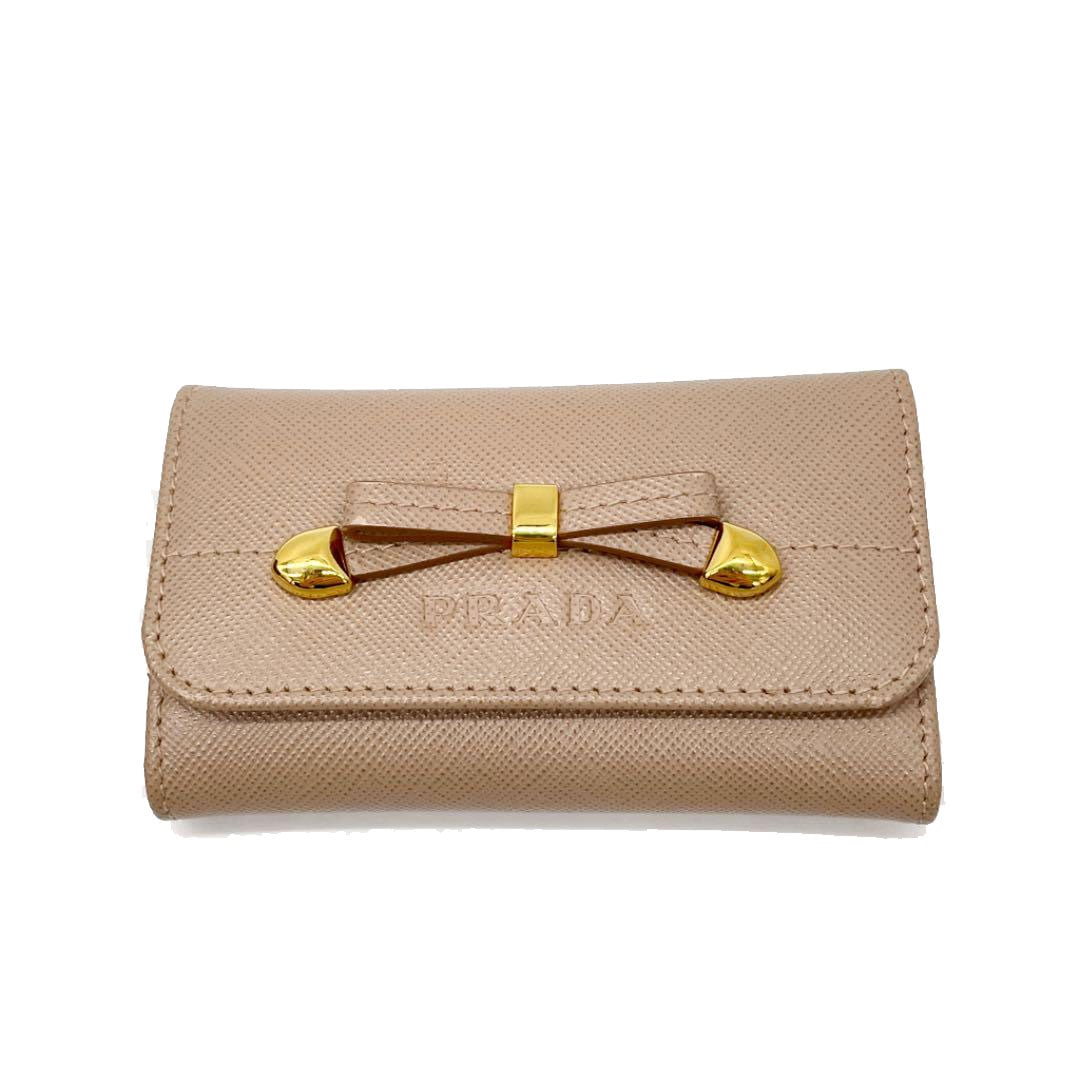 PRADA プラダ 6連キーケース リボンモチーフ サフィアーノレザー ベージュ系 ゴールド金具