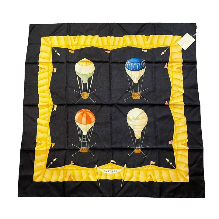 BVLGARI ブルガリ スカーフ 気球柄 シルク ブラック