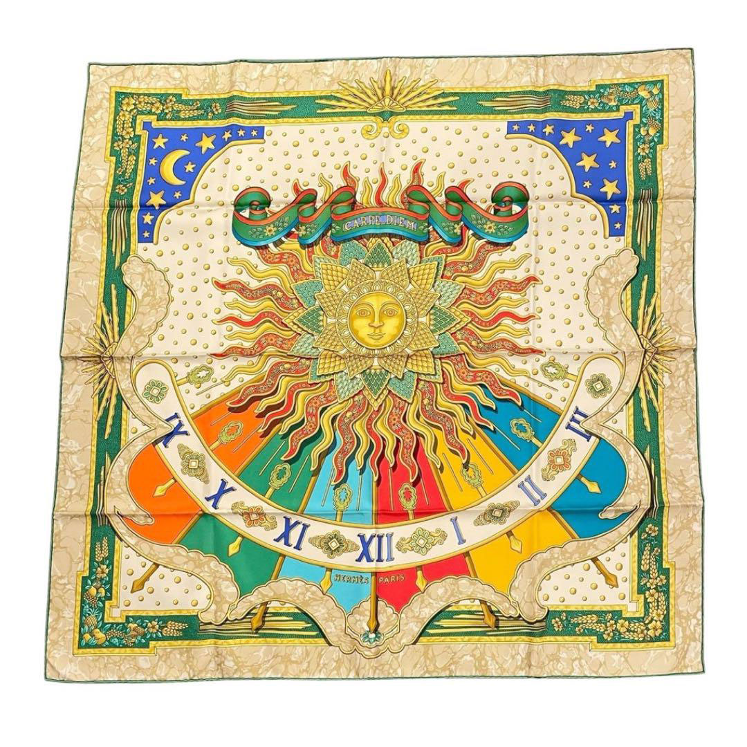 HERMES エルメス スカーフ カレ90 『CARPE DIEM(今日一日を楽しむ)』太陽 星柄 シルク グリーン ベージュ