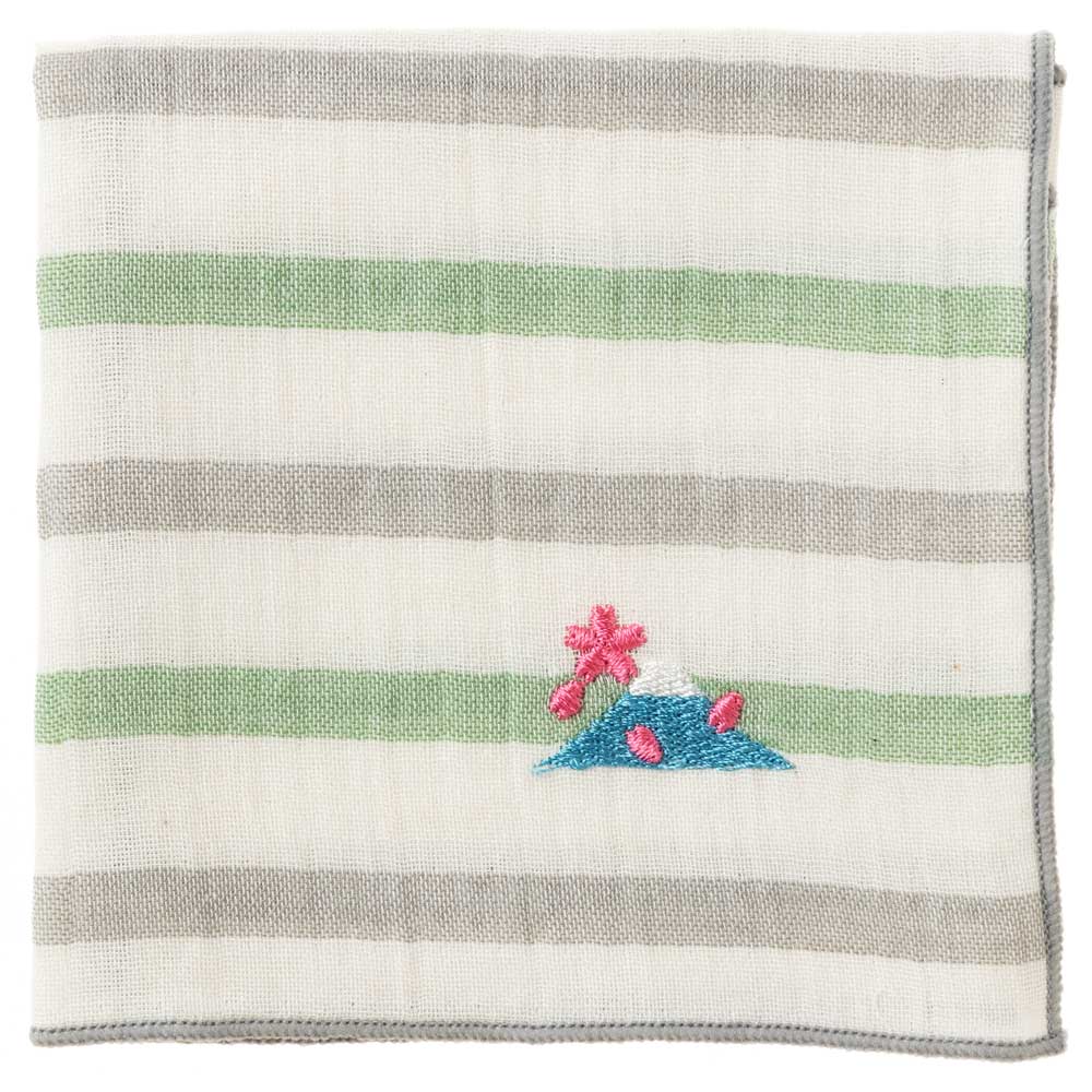 和のたしなみハンカチ 扇子(ストライプ ホワイトグレー) 刺繍入りガーゼハンカチ スーベニール Japanese pattern ...