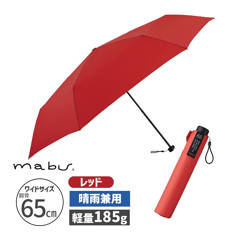 [SMV-41525] ワイドライトUVミニ65 レッド 折り畳み傘 カサ かさ 折りたたみ 晴雨兼用 UV対策 軽量★