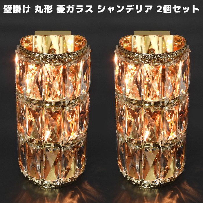 壁掛け シャンデリア 円柱灯 壁掛 B02 2個セット 12V / 24V フル ゴールド メッキ クリスタル 菱型 ガラス 平ビ...