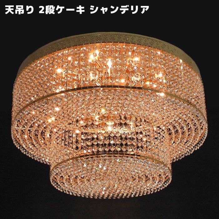 シャンデリア 天吊り C01 ダブル ケーキ Φ60 12V / 24V フル ゴールド メッキ クリスタル ガラス ビーズ 新品...